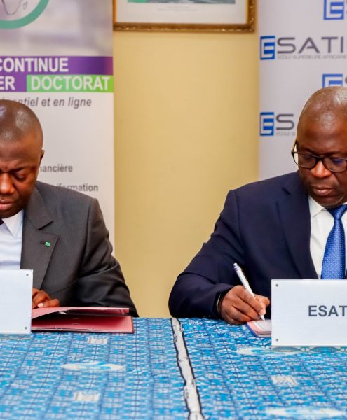 The General Manager of the Ecole Supรฉrieure Africaine des Technologies de l'Information et de la Communication (ESATIC), prof. KONATE Adama and the General Manager of the Centre Africain de Management et de